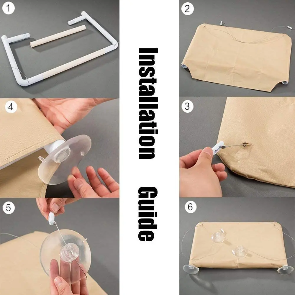 The bed is designed to attach directly to the window with four sucker cups (no hardware or tools needed.)